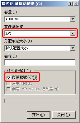 語音卡與語音板通訊軟件之間通訊采用RS-232通訊,設(shè)備之間通過RS-232標(biāo)準(zhǔn)延長電纜連接。連接USB電纜后,格式化設(shè)備(選擇快速格式化)。